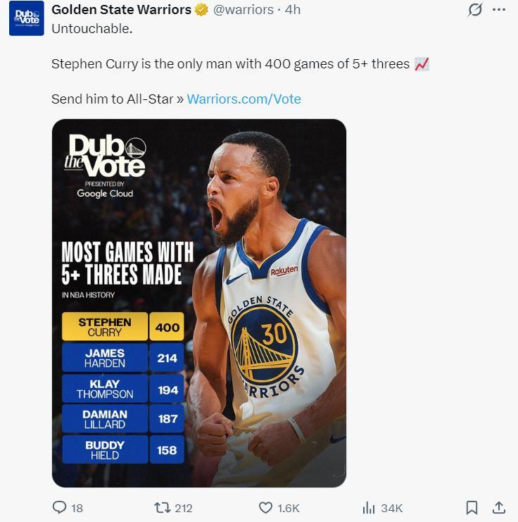 此役37歲的老萌神又迎來了一個全新的里程碑,他成爲NBA歷史上第一位達成400場5+三分球的球員斷崖第一,第二的哈登只有214次,這就是三分之神的恐怖實力。