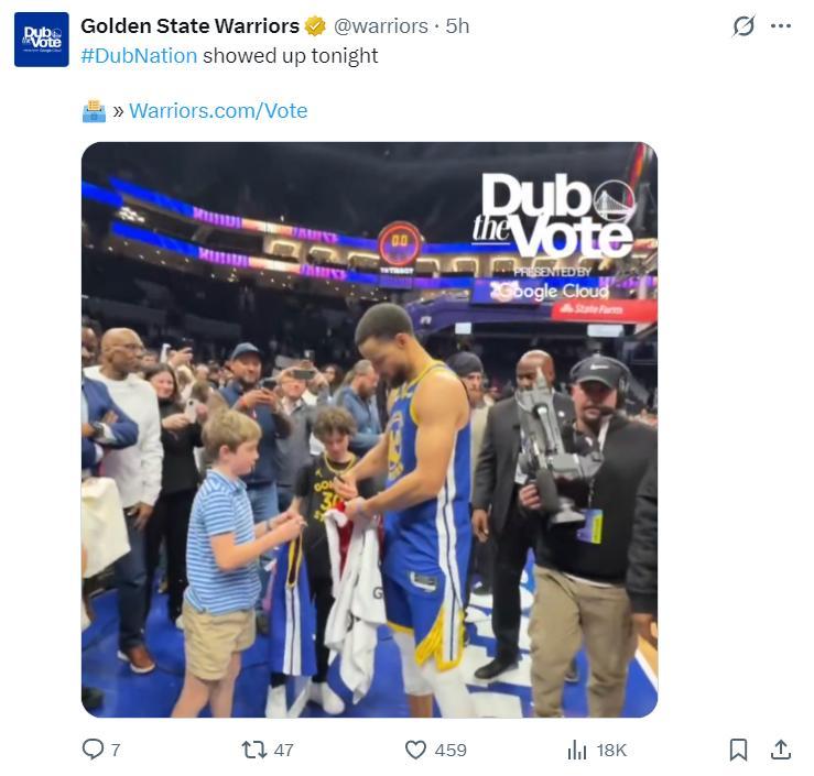這場比賽斯蒂芬在父親戴爾的母隊獲得了巨大的支持聲,就如同庫裏在布魯克林被高呼MVP一樣,比賽結束後很多的球迷都來圍繞着萌神,37歲的庫裏爲多位小球迷都進行了簽名。