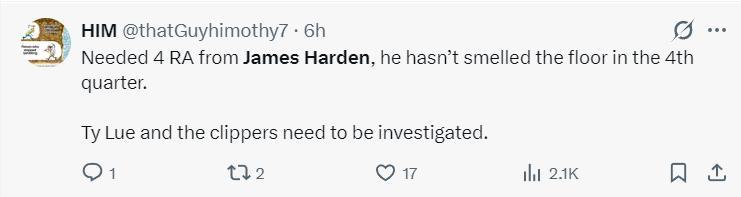 3.哈登第四節沒有獲得任何一分鐘,泰倫盧和快船的行爲應該被調查。
