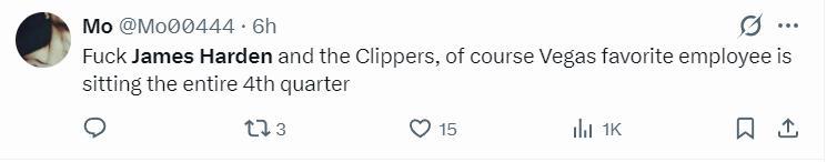 7.哈登作爲快船的球星,第四節不讓上fuxk,快船是不是跟拉斯維加斯在合作。