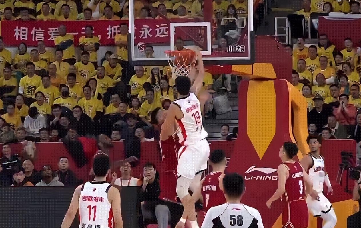 比賽還剩1分47秒,徐昕高高躍起補釦成功,他下面還隔着身高2.25米的劉傳興,這個隔扣蕩氣迴腸、氣吞山河,徐昕本賽季被譽爲‘文班亞昕’不是沒有道理的。