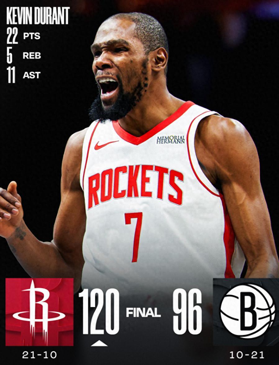 北京時間1月2日,火箭120-96大勝籃網拿到四連勝,火箭穩住了他們西部上半區的席位,火箭距離西部第三的掘金只剩下1個勝場,而且掘金的替補中鋒瓦蘭也傷了,火箭重返西部第三似乎已經是板上釘釘,杜蘭特的競技狀態一如既往的穩定。