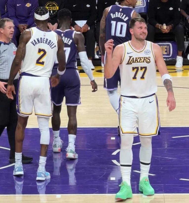 上圖是湖人VS國王比賽截圖,東契奇的臉再度變成了圓形,他夏天還是有棱有角的臉,手臂上肌肉的線條也已經消失不見了。