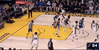 如果上一回合只是象徵性的假掩護,那這一回合,懷斯曼連續兩個掩護都彷彿空氣牆,完全沒給馬刺防守人哪怕一點阻礙。特別是第一個擋拆,位置沒站好、擋都沒擋好,就一心想着外切。第二個擋拆也是如此,還沒擋住人,就拆得比誰都積極。