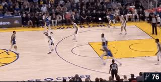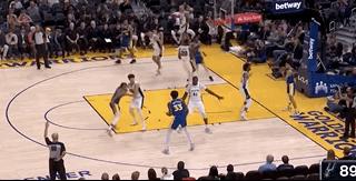 喬·拉科布被詹姆斯·懷斯曼的一顆三分球點燃了全部激情,他女友似乎也被這種激情感染,大聲問道:“那他什麼時候回到勇士呢?”