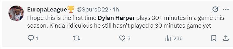 美球迷:我太希望哈珀這場比賽能登場超過30分鐘,令人驚訝的是作爲榜眼他本賽季竟然一場30分鐘以上的比賽都沒有。