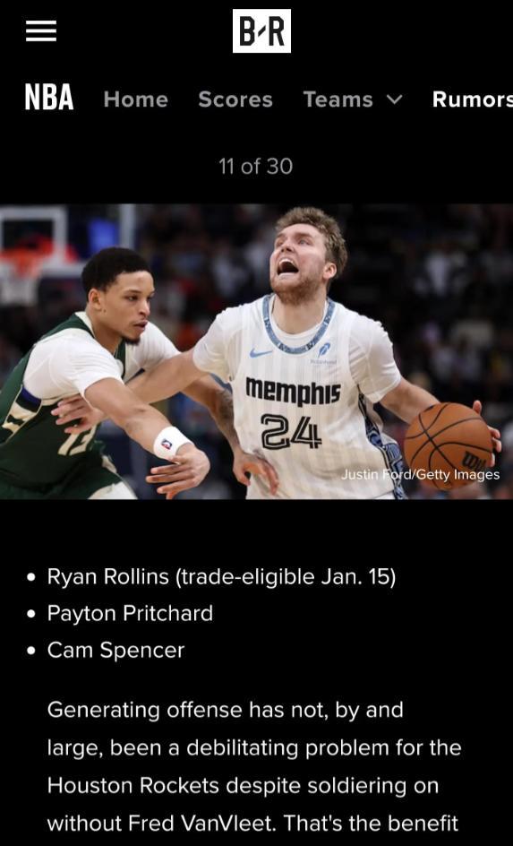 美國媒體《露天看臺》還爲火箭隊列舉了三個可以引進的控衛對象,因爲範弗利特大概率要賽季報銷了,第一個是雄鹿的羅林斯、第二個是凱爾特人的普理查德,第三位是灰熊隊的卡姆-斯潘塞,如果能交易得到他們其中之一火箭的硬實力還能提升。