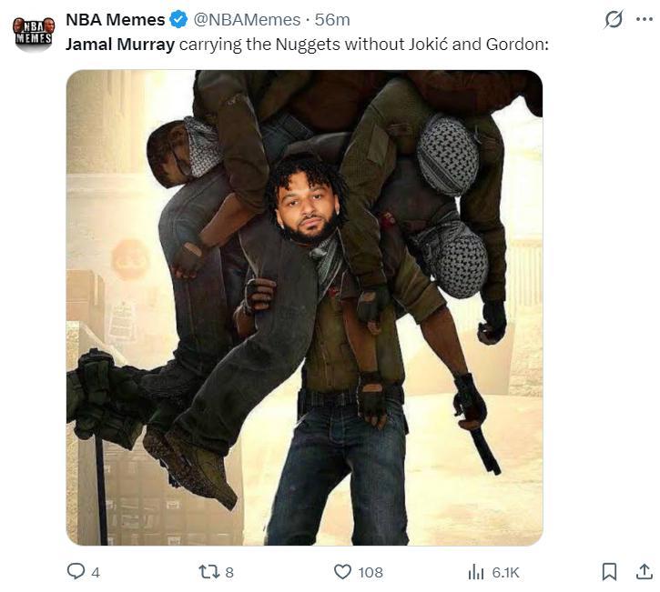 美媒NBA Memes,穆雷一人扛起了沒有戈登、約基奇等人的掘金。