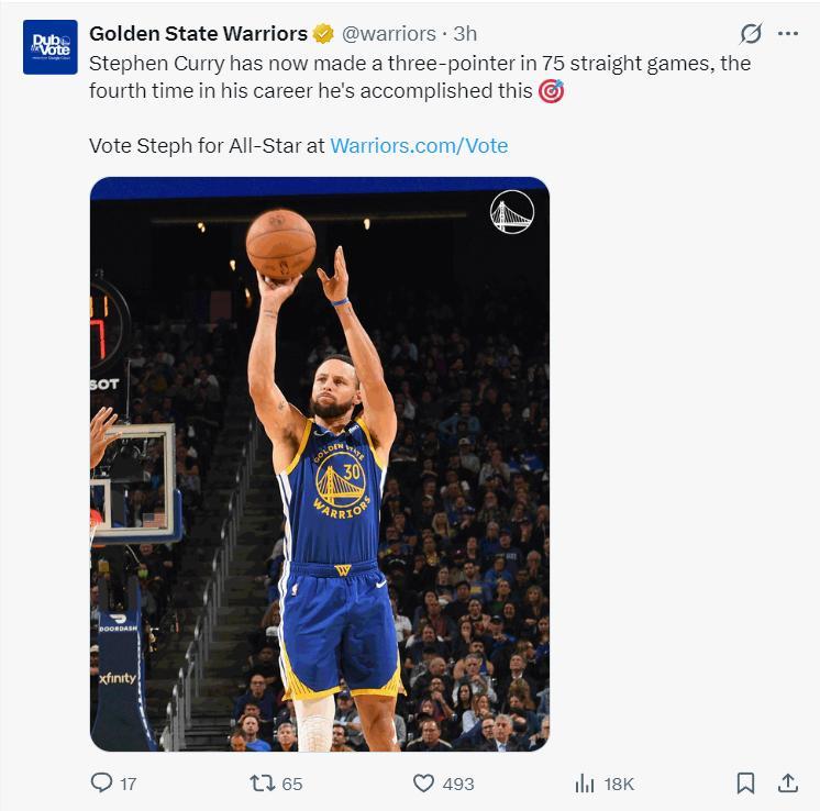 這場比賽庫裏又迎來多項里程碑:1.庫裏連續75場比賽命中三分,生涯第四次做到;