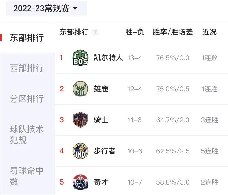 2022/23賽季,開局10勝6負排名東部第四,目前已經五連勝。