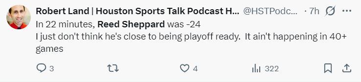 休媒:謝潑德僅出戰22分鐘在場-24,我覺得他距離一個能在季後賽登場的球員還差得很遠,一個已經打了40場+NBA比賽的球員來說他的表現根本不及格。