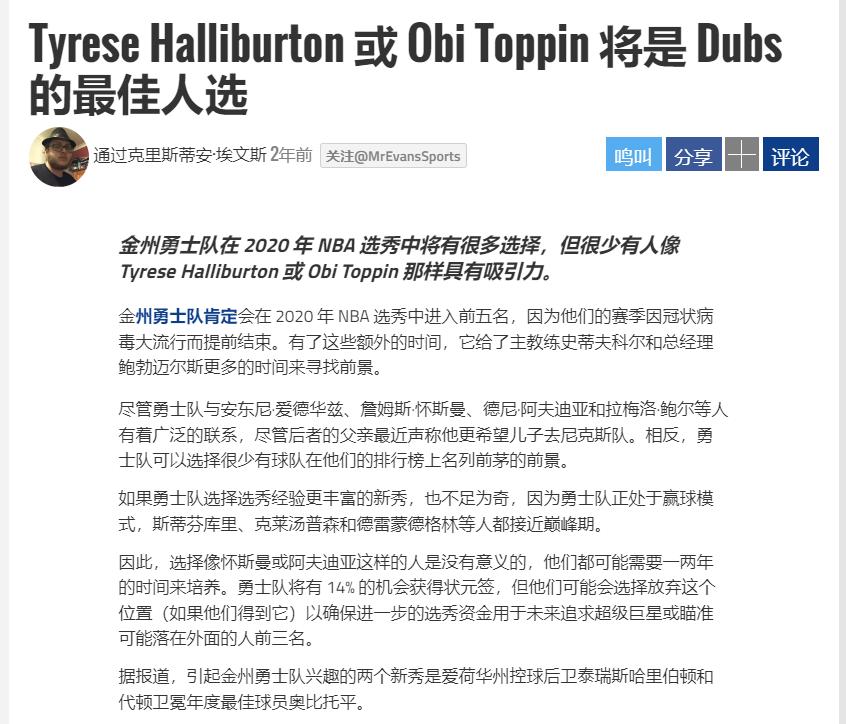 2020年選秀大會,勇士意外抽中榜眼籤,一時間不知道該如何抉擇。