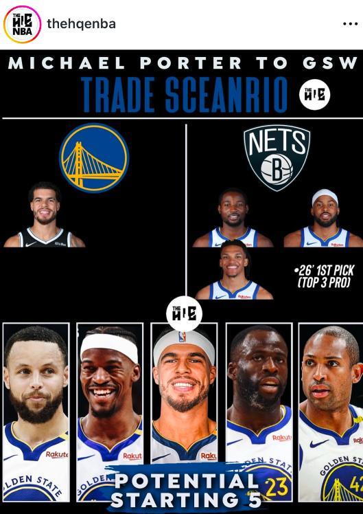 交易方案,勇士送出庫明加、穆迪、理查德、2026年前三保護首輪得到小邁克爾-波特。