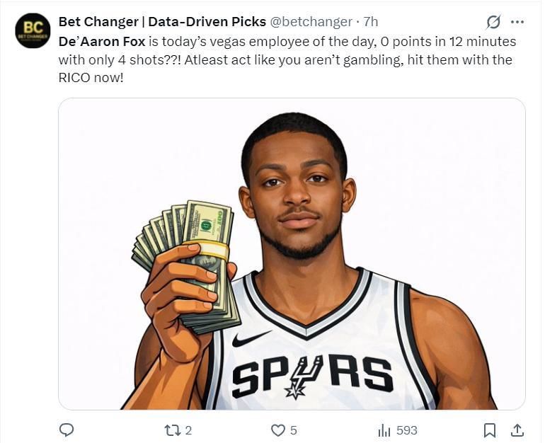 這場比賽馬刺有兩大罪人,一個是福克斯,一個是卡斯爾,福克斯肯定是最大的罪人,他全場比賽30分鐘,18中4,三分8中1,拿到9分8助攻5籃板2失誤,命中率22.2%,三分命中率12.5%,真實命中率25%,正負值-18。