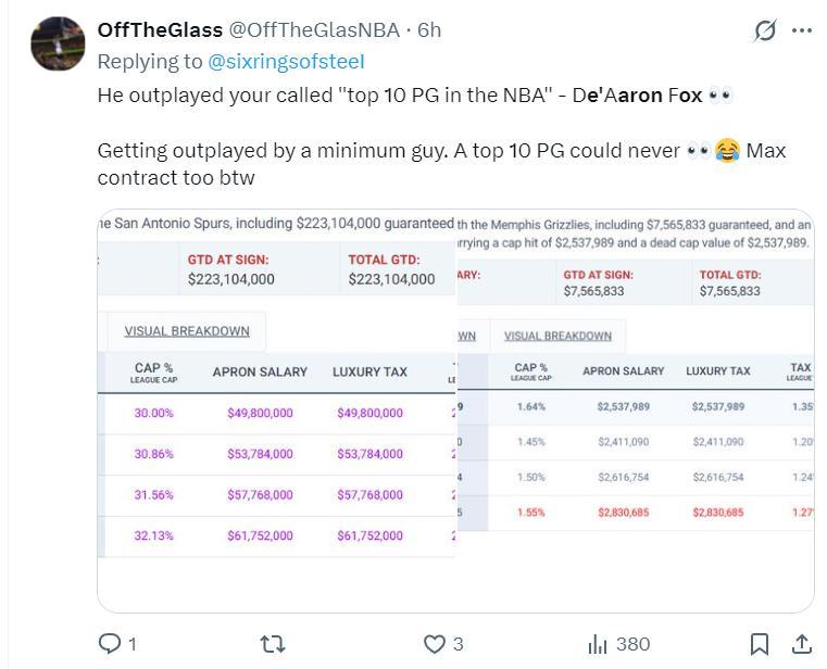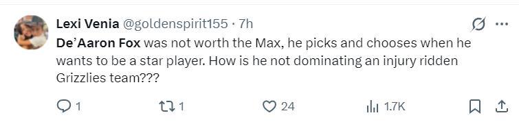 美球迷:福克斯根本不配那份頂薪合同,他總是隨意的將自己稱之爲明星球員,結果帶隊打不過傷兵滿營的灰熊。