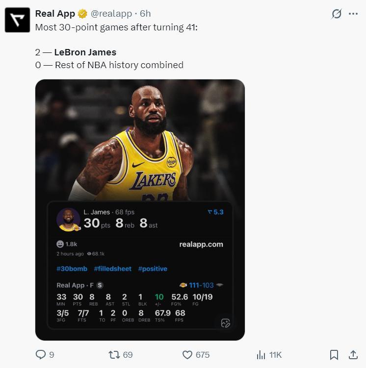 2.生涯574場30+繼續刷新自己保持的歷史第一紀錄;