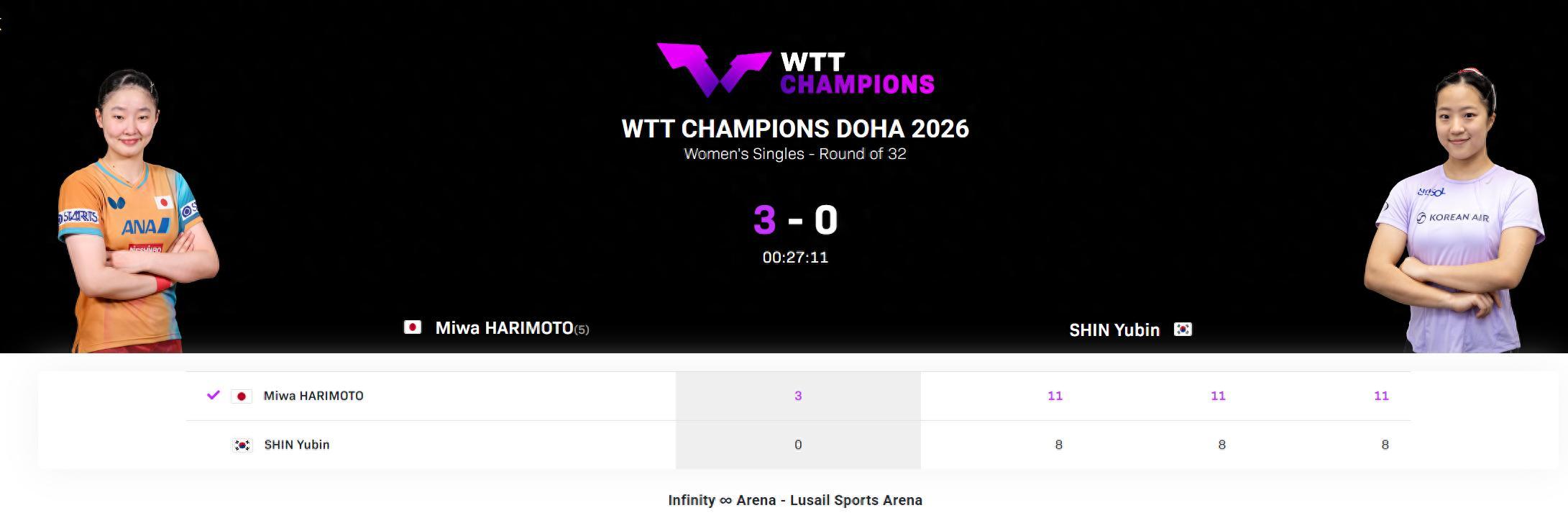 北京時間1月7日,WTT多哈冠軍賽女單1/16決賽,張本美和3-0橫掃申裕斌,三局比分:11-8、11-8、11-8。這場比賽17歲的日乒一姐吊打了21歲的韓乒一姐,這兩人的硬實力看上去非常明顯,申裕斌幾乎沒有給張本美和什麼阻礙。