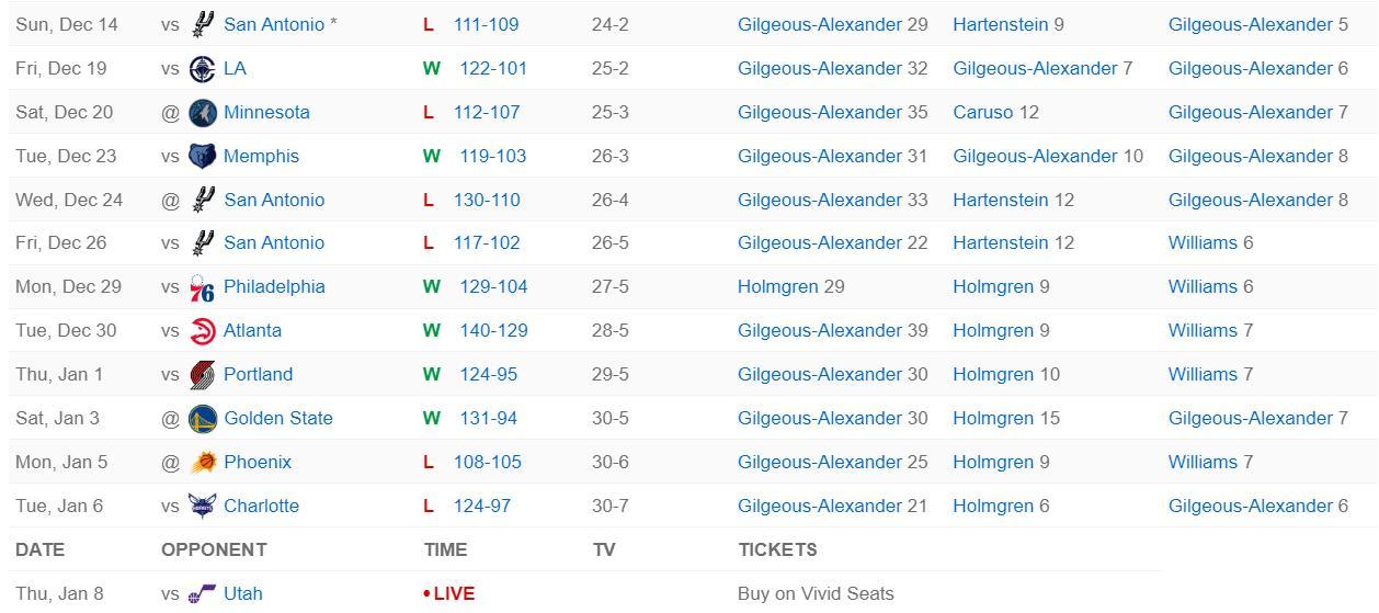 雷霆避免的賽季第一次三連敗,這也是雷霆本賽季38場比賽的第31場勝利,雷霆要去衝擊70勝難度還是很大。
