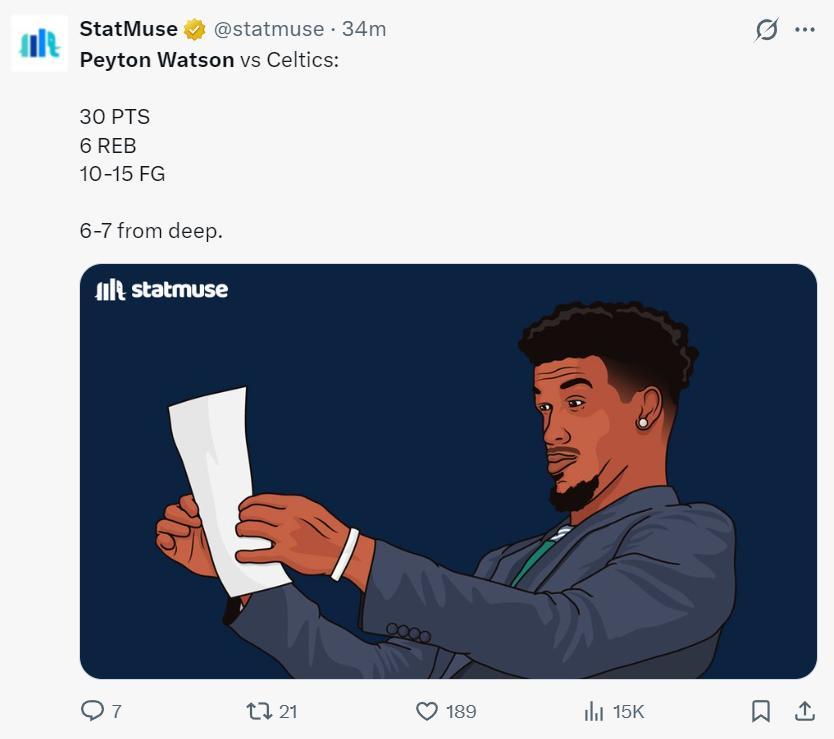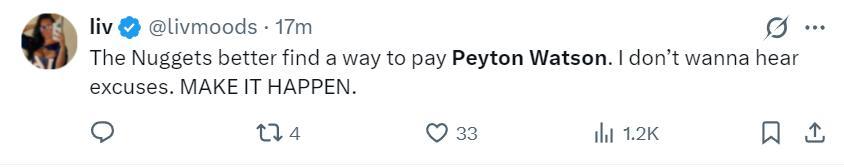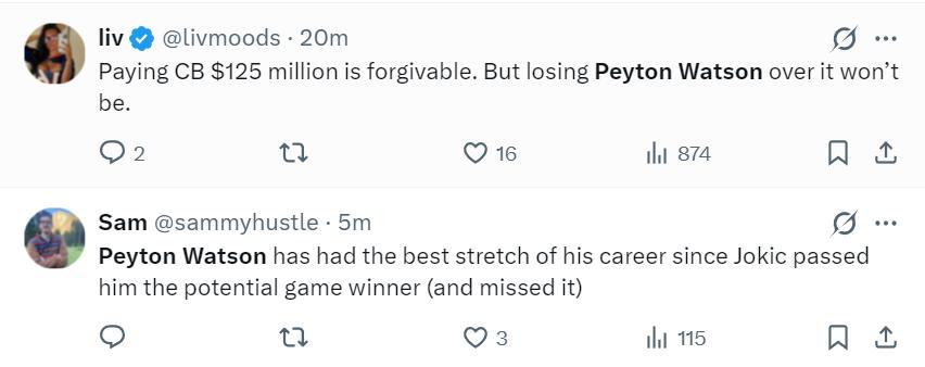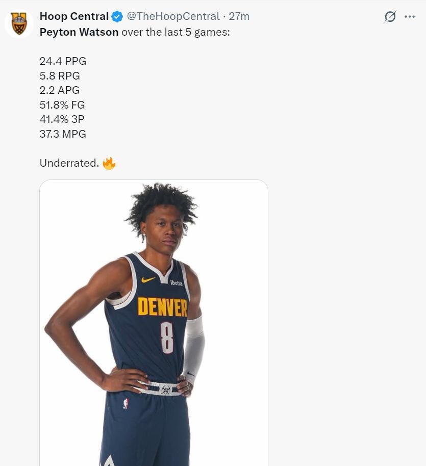 美媒:給沃特森五年1.25億的大合同吧,沃特森真的絕配這樣的合同,如果失去他會得不償失。沃特森在約基奇傷停後迎來了生涯最輝煌的階段。