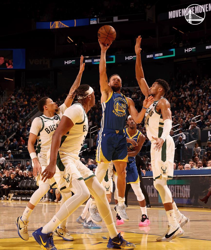 庫裏第三節的效率一下就起來了,登場連續三個中距離的跳投、拋投都命中,庫裏面對特納命中後直接打停了雄鹿。這一節庫裏的感覺是完全恢復,單節7中5+三分3中1,拿到13分3籃板2助攻,三節27分6助攻5籃板,庫裏下場時那叫一個高興啊。