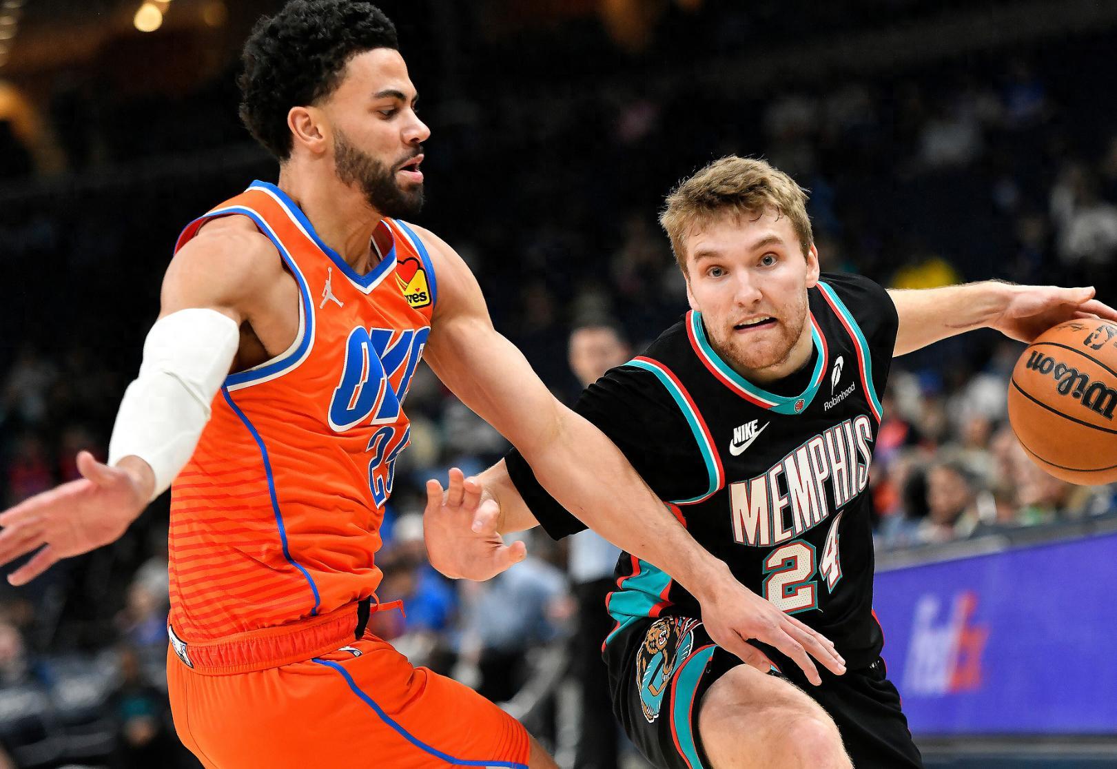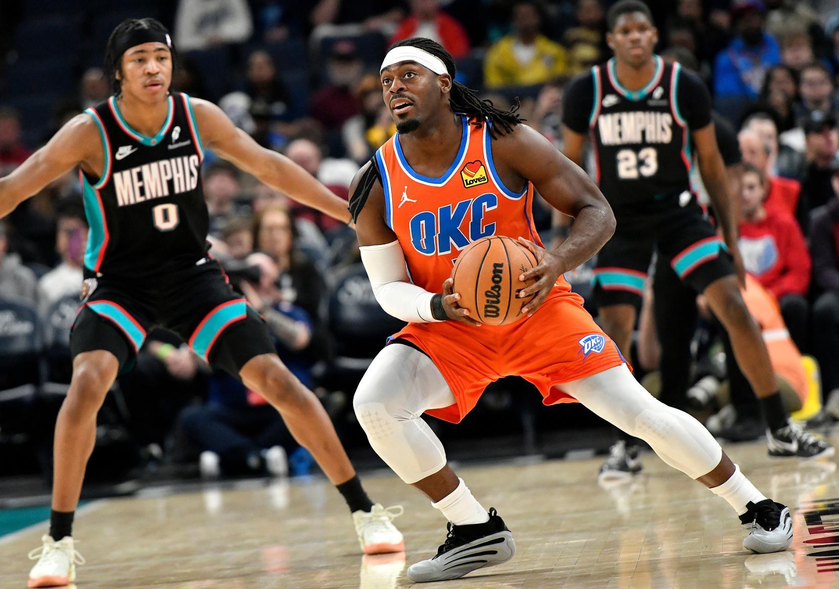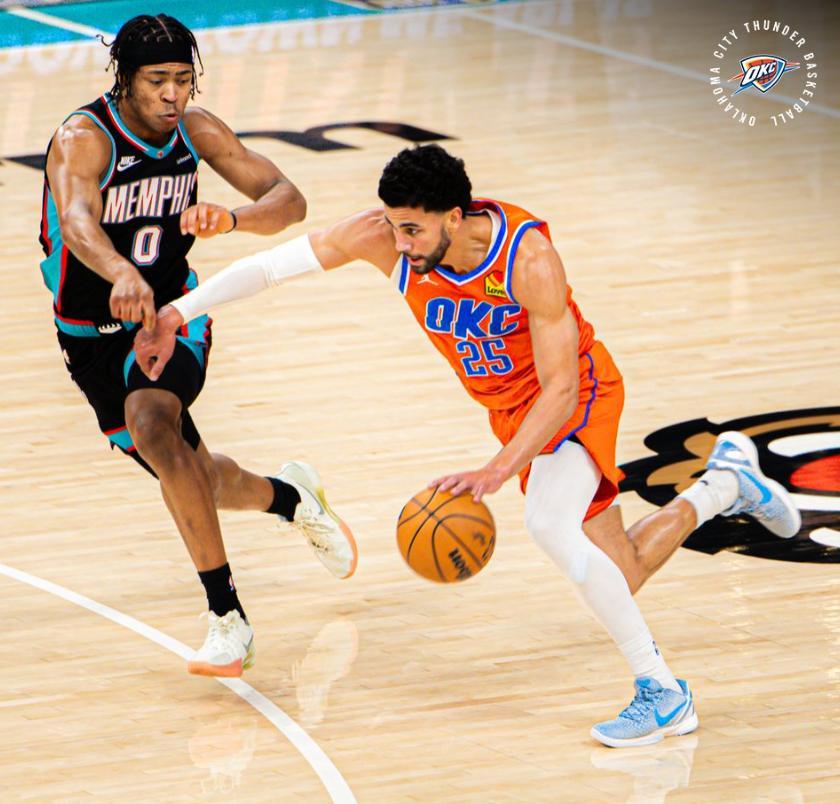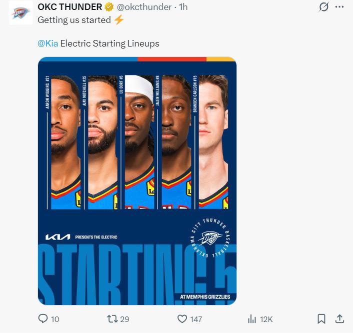 上半場灰熊最多時領先雷霆21分之多,雷霆是防守效率聯盟第一的球隊,可上半場還是讓灰熊拿到65分這已經說明沒有SGA的雷霆判若兩隊。傑威、米切爾、威金斯、多爾特、卡爾森的先發陣容進攻效率也不佳,尤其是球隊第二巨頭傑威沒有什麼進攻的慾望。