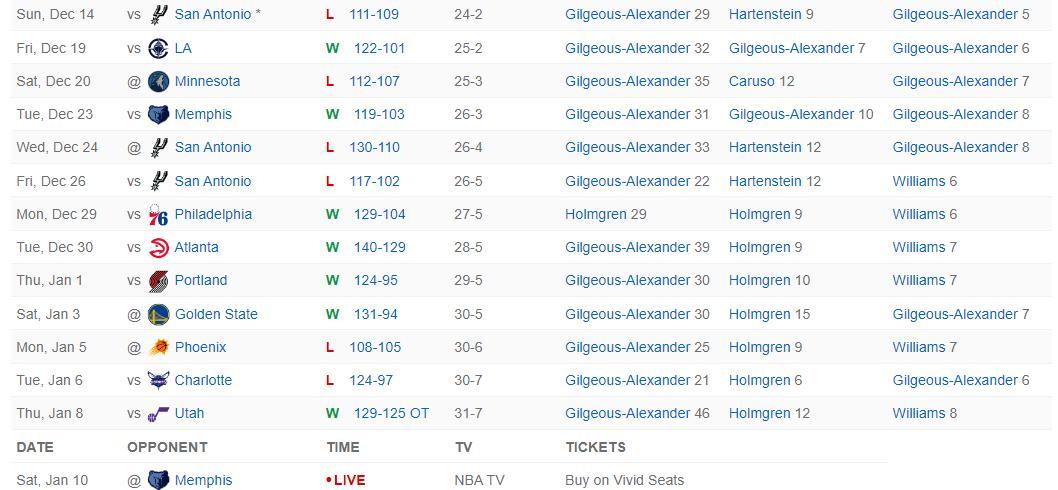 北京時間1月10日,NBA常規賽,雷霆以117-116逆轉灰熊拿到二連勝。首節雷霆就落後10分,半場雷霆落後到19分,三節打完雷霆還落後13分,末節雷霆打出了36-22的攻防浪潮完成了逆轉,雷霆殘陣在落後21分的情況下逆轉了灰熊。