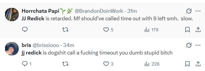 雷迪克詳細的採訪是這樣,他的經典甩鍋言論:我換上一名替補球員時我們還在討論,我知道應該來一個短暫停,我感覺只需要2秒就可以喊出暫停,那時候我們還有16秒,但他們沒有聽到我的指令,本賽季已經發生了三次這樣的情況,但是我理解這種情況,在多倫多我們因此贏了一場球,但這場比賽我覺得我應該擔責。