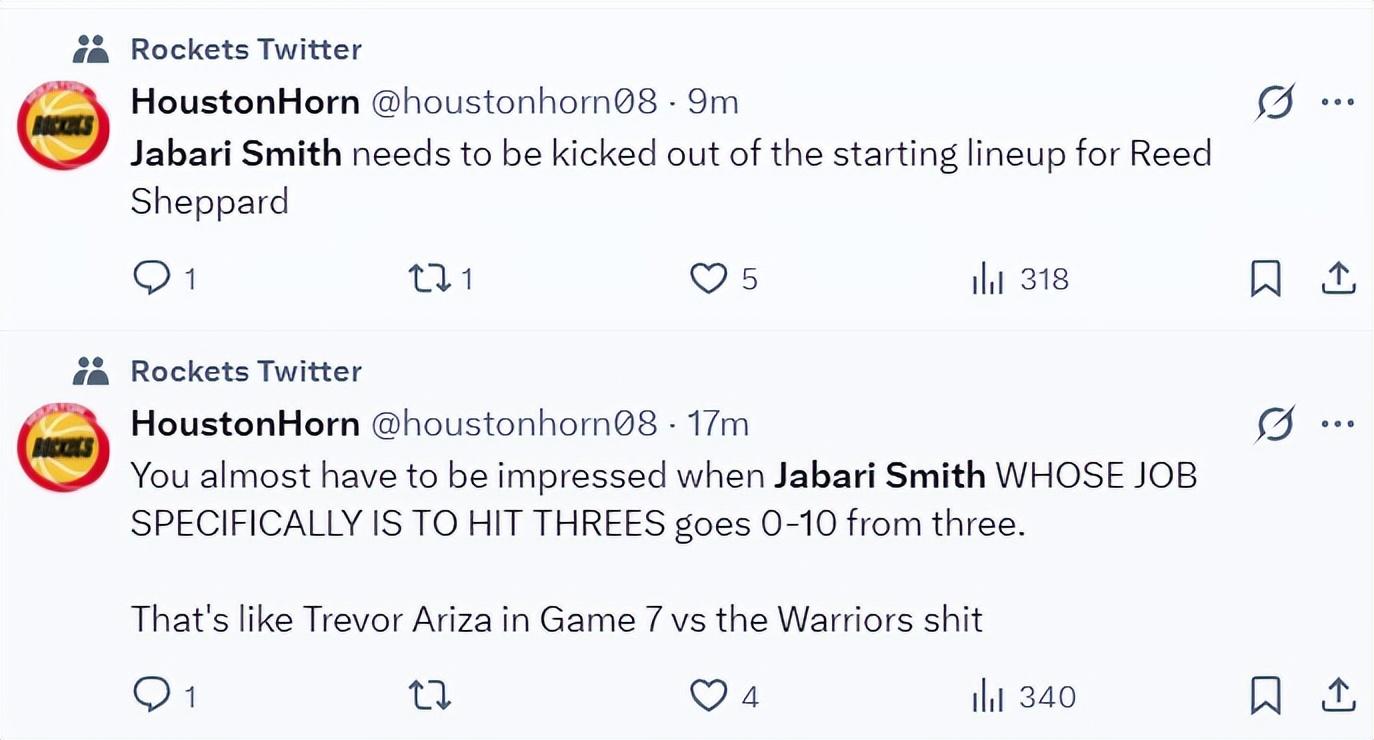 火箭球迷:小賈是我見過最糟糕的表現,在末節連續打鐵,他裝都不裝了,四個大空位都不進。