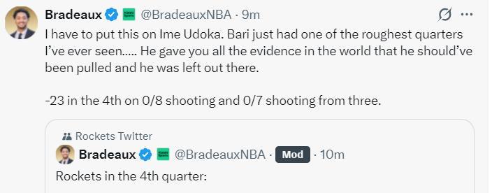火箭記者Bradeaux:我認爲小賈低迷的問題烏度卡也該擔責,小賈正在經歷我見過最艱難的時刻,他本該被棄用,但烏度卡依舊不換下他。