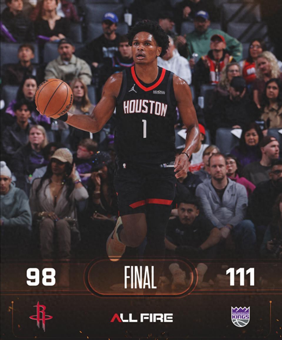 火箭98-111慘敗國王吞下三連敗,火箭隊再一次輸給了西部倒數第一的球隊,而且本賽季在薩克門託火箭遭到雙殺,國王則結束了7連敗。這場失利還是在申京復出的情況下,最爲慘烈的是火箭隊此役後已經跌入附加賽區。