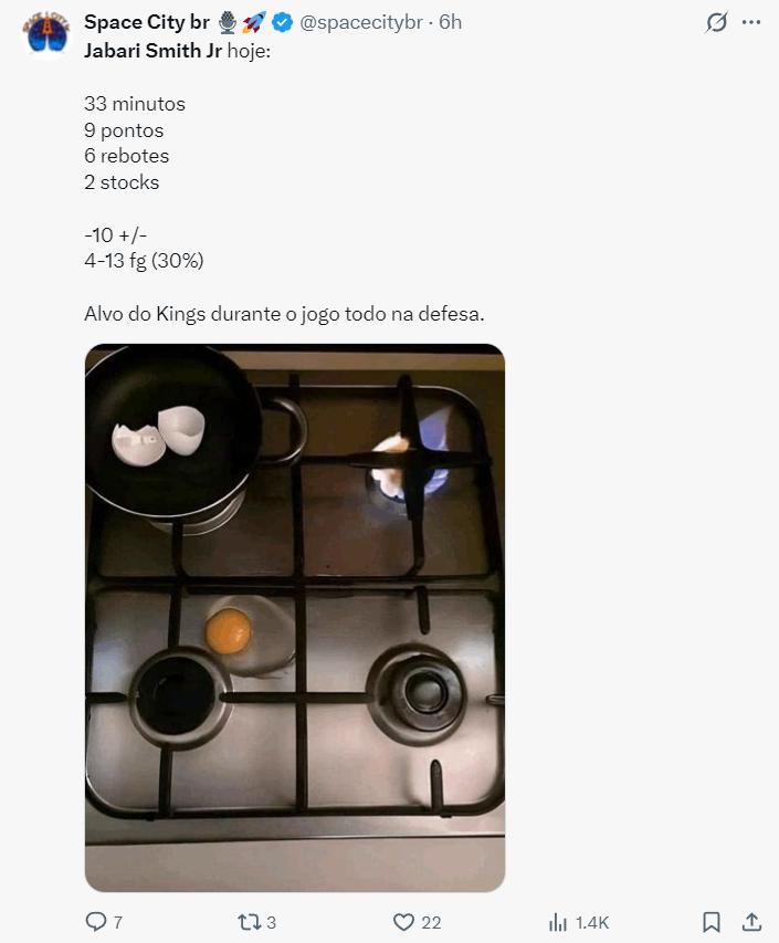 火箭隊居然被國王隊狂勝13分,在薩克門託遭到雙殺,國王7連敗之前贏下的球隊就是火箭,7連敗後贏下的球隊還是火箭。休斯頓火箭隊在短短一週裏從西部第三下滑到西部第七,小賈巴里-史密斯成爲休媒公敵。