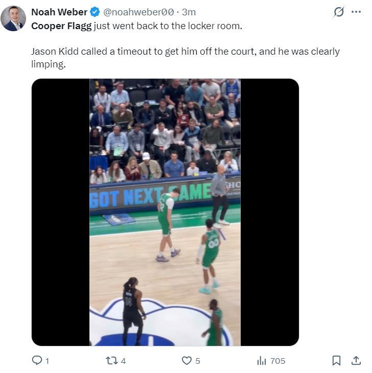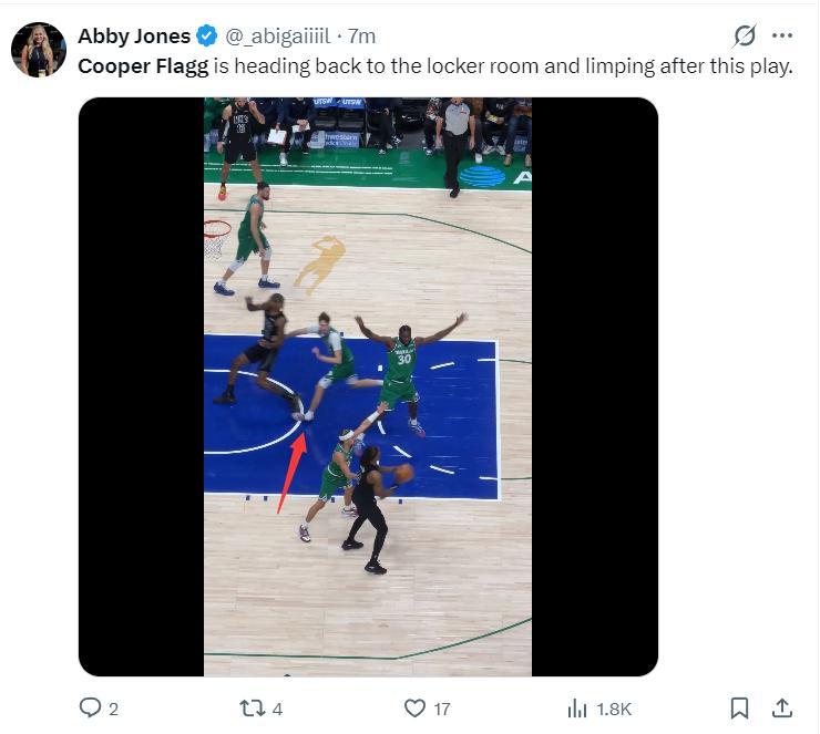 第三節弗拉格打了7分鐘,弗拉格在一次追防過程中左腳意外扭傷,隨後弗拉格一瘸一拐的走回了更衣室。獨行俠記者表示:基德主動叫暫停換下弗拉格,弗拉格的確是一瘸一拐的。
