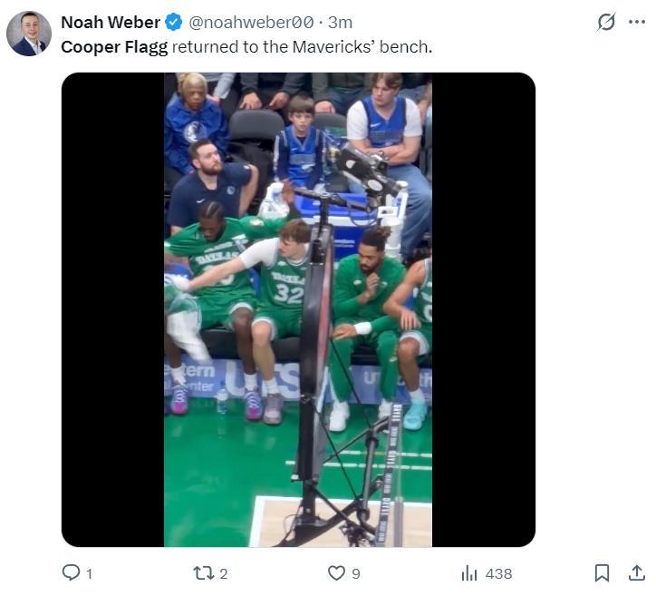 多人遭遇傷病的獨行俠唯一的看點就是狀元弗拉格了,場下坐着戴維斯、華盛頓、布威、拉塞爾、加福德、萊夫利、歐文、艾克薩姆,這樣的比賽弗拉格就進入表演模式,首節5中2+三分1中1拿到7分1搶斷。