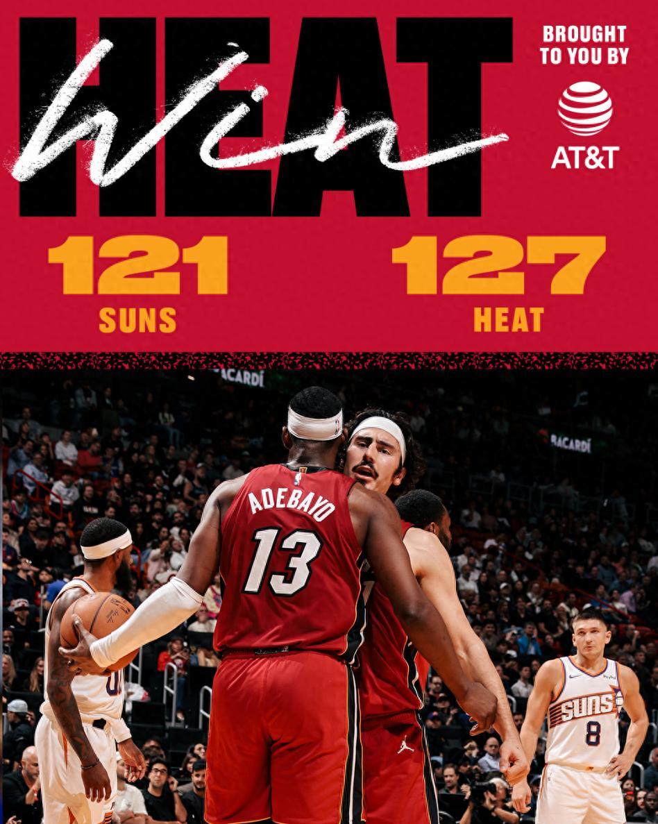 北京時間1月14日,NBA常規賽,熱火以127-121險勝太陽。這場比賽是超長拉鋸戰,兩隊鏖戰至最後一刻,終場前48秒鮑威爾的三分球命中才改變了局勢,格雷森-阿倫三分絕平不中太陽拼下了前場籃板 ,狄龍的絕平三分繼續不中還喫了一個一級惡意犯規,比賽走向完結。