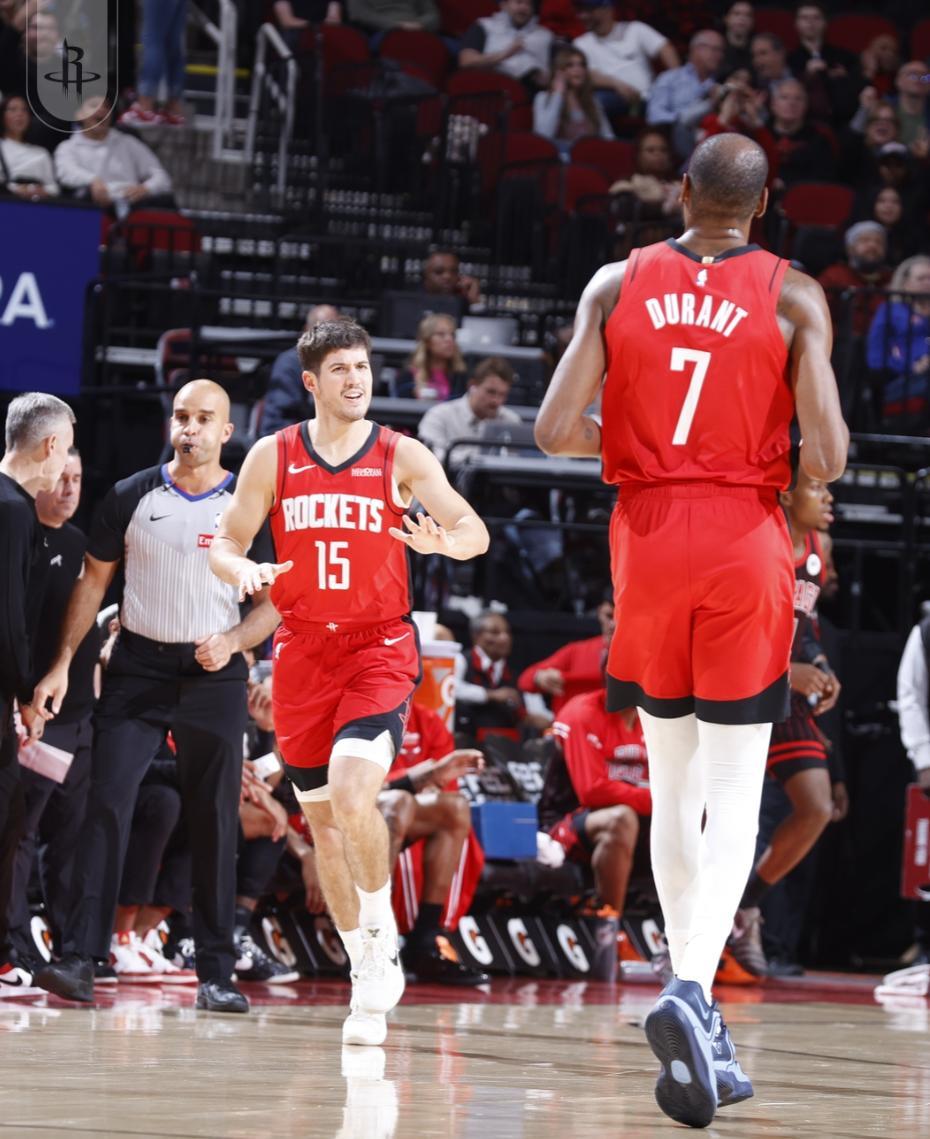 末節KD先休息,火箭的進攻流暢性大減,好在申京連續籃下單打得手,還剩7分54秒KD回來,謝潑德兩次的誤攻防守也完全防不住公牛一波6-0反超烏度卡無奈暫停。阿門命中一個底角三分,小賈連拿8分太關鍵了(末節10分),杜蘭特空切暴扣鎖定勝局。