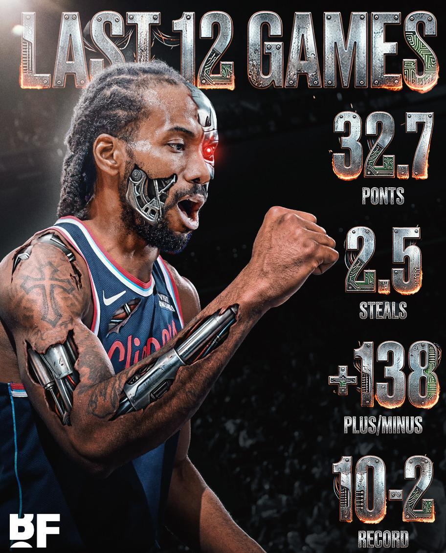 快船過去13場比賽取得11勝2負,小卡的正負值也繼續提升到+145還是聯盟第一,萊昂納德的場均得分也提升到場均32.72分也是聯盟第一,他的個人能力真的強。