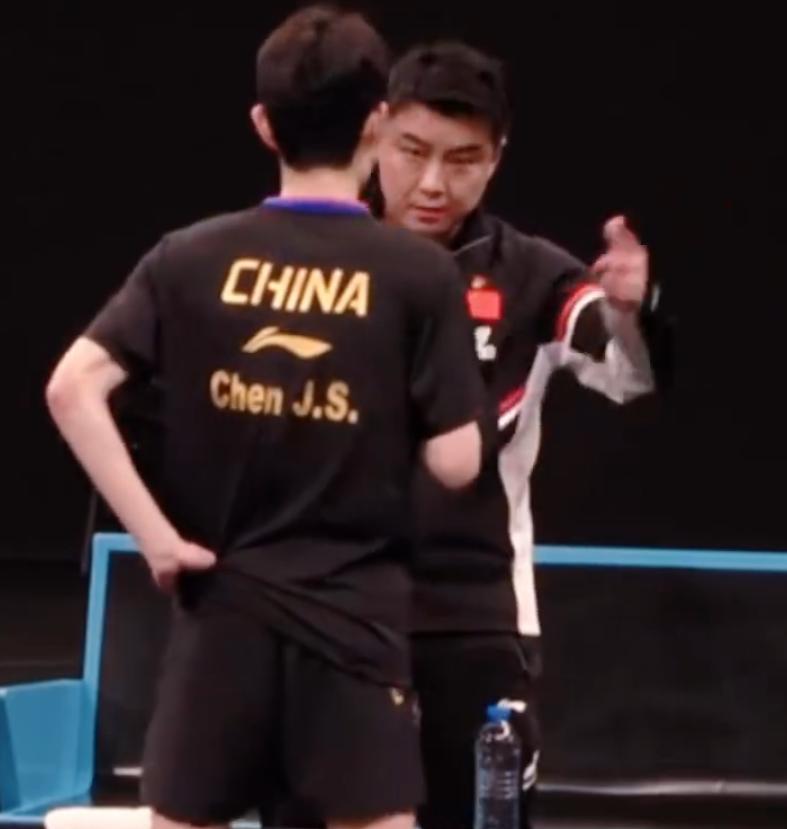 在前兩局陳俊菘都完成逆轉後,王皓指導一臉的欣慰啊,要知道幾天前王皓指導的優秀弟子林詩棟在多哈冠軍賽止步四強,林詩棟被30歲的老將張禹珍給爆冷了,當時王皓那個顏色慘淡無比,這次終於鬆口氣。