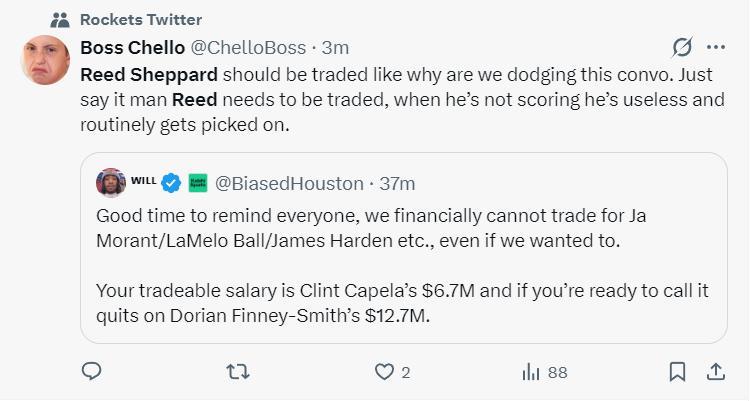 隨後火蜜轉推後寫道:謝潑德應該被交易出去,爲什麼我們還要回避這個話題?說出來吧哥們兒,謝潑德需要被交易,他在場上毫無價值,而且他的尺寸太小各種被對手欺負。