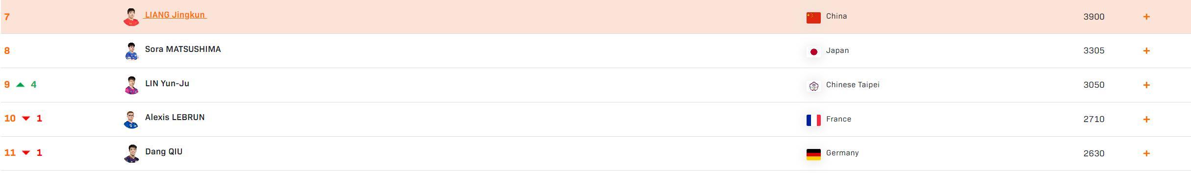 目前梁靖崑的世界排名還在第七,但松島輝空、林昀儒跟他的差距正在急速減小,這個賽季或許就是梁靖崑跌出前十的賽季了,去年三月開始的腰傷讓梁靖崑的運動能力大跌,競技狀態也大跌。