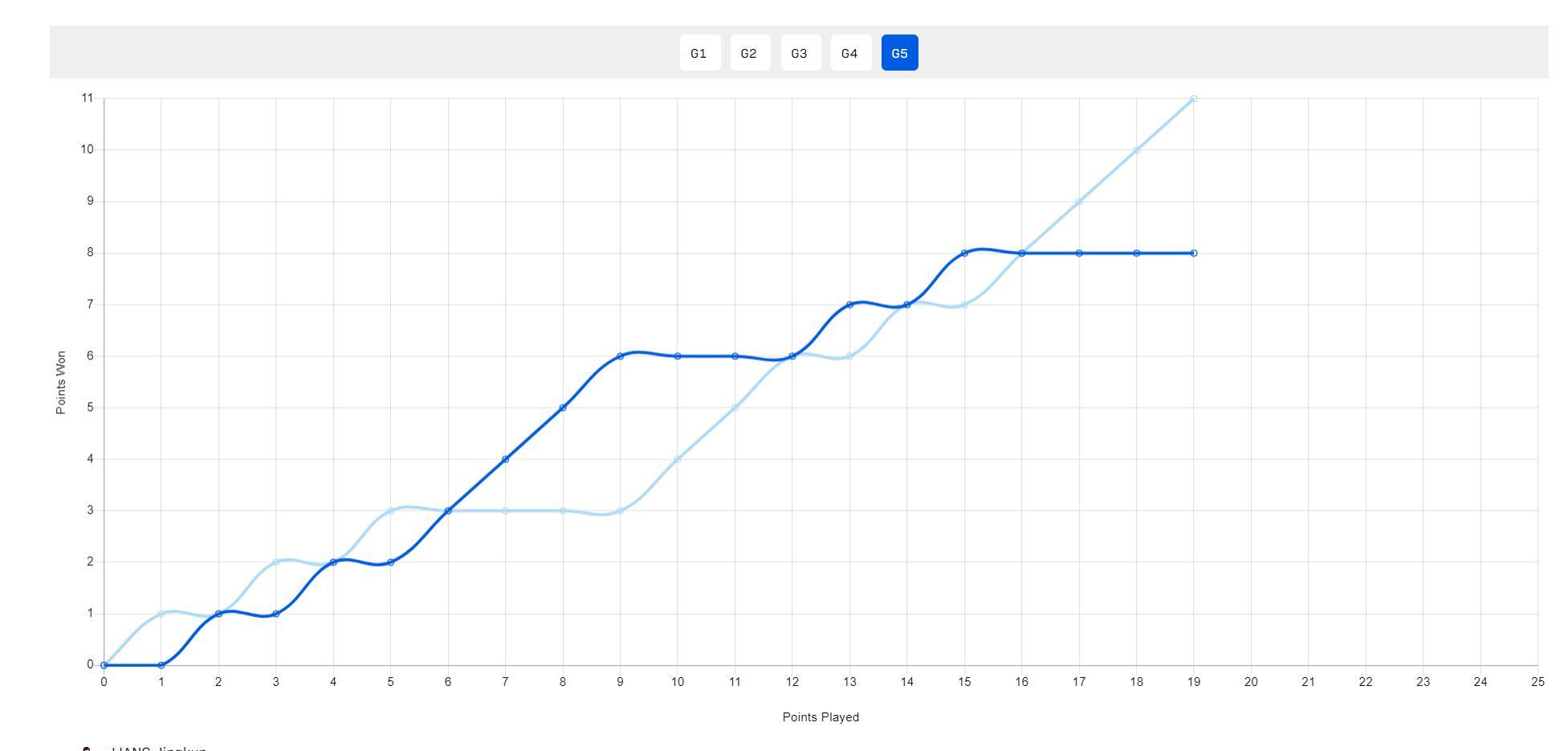 決勝局,梁靖崑一度6-3領先,隨後梁靖崑直接崩盤被周啓豪追到6-6,梁靖崑7-6後又被周啓豪追平7-7,梁靖崑8-7反超,周啓豪再度追平8-8,從這裏梁靖崑又崩盤,周啓豪一波3-0直接拿下勝利。