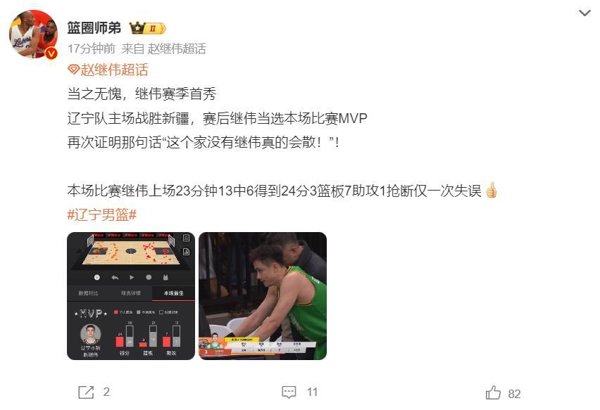 遼籃資訊:趙繼偉全場最高24分幫助遼寧拿下勝利,這種感覺久違了。