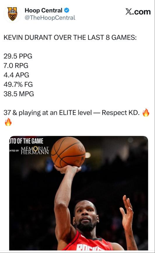 休媒:37歲的杜蘭特就是聯盟歷史最偉大的球員之一。