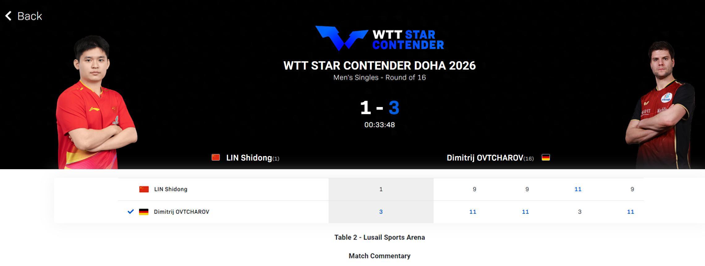 北京時間1月17日,WTT多哈球星挑戰賽1/8決賽,林詩棟1-3慘敗奧恰洛夫早早出局,頭號種子止步16強算是爆出超大冷門,四局比分:8-11、9-11、11-3、9-11。