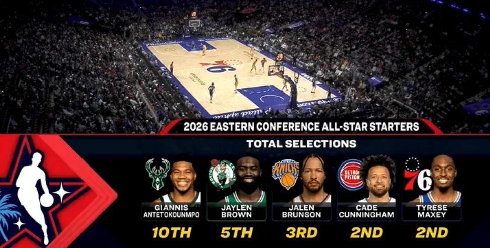 北京時間1月20日已經公佈了全明星先發,東部的先發陣容是馬克西、坎寧安、布倫森、布朗、揚尼斯,布朗生涯已經第五次入選全明星,但作爲全明星先發是第一次。