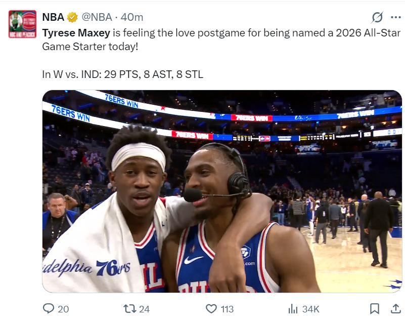 北京時間1月20日,費城76人113-104大勝印第安納步行者。這場比賽是一場拉鋸戰,費城是在下半場纔開始掌控大局,馬克西、恩比德兩位核心發揮出色,頂替喬治先發的烏佈雷也拿到18分5助攻的數據助力雙帝。