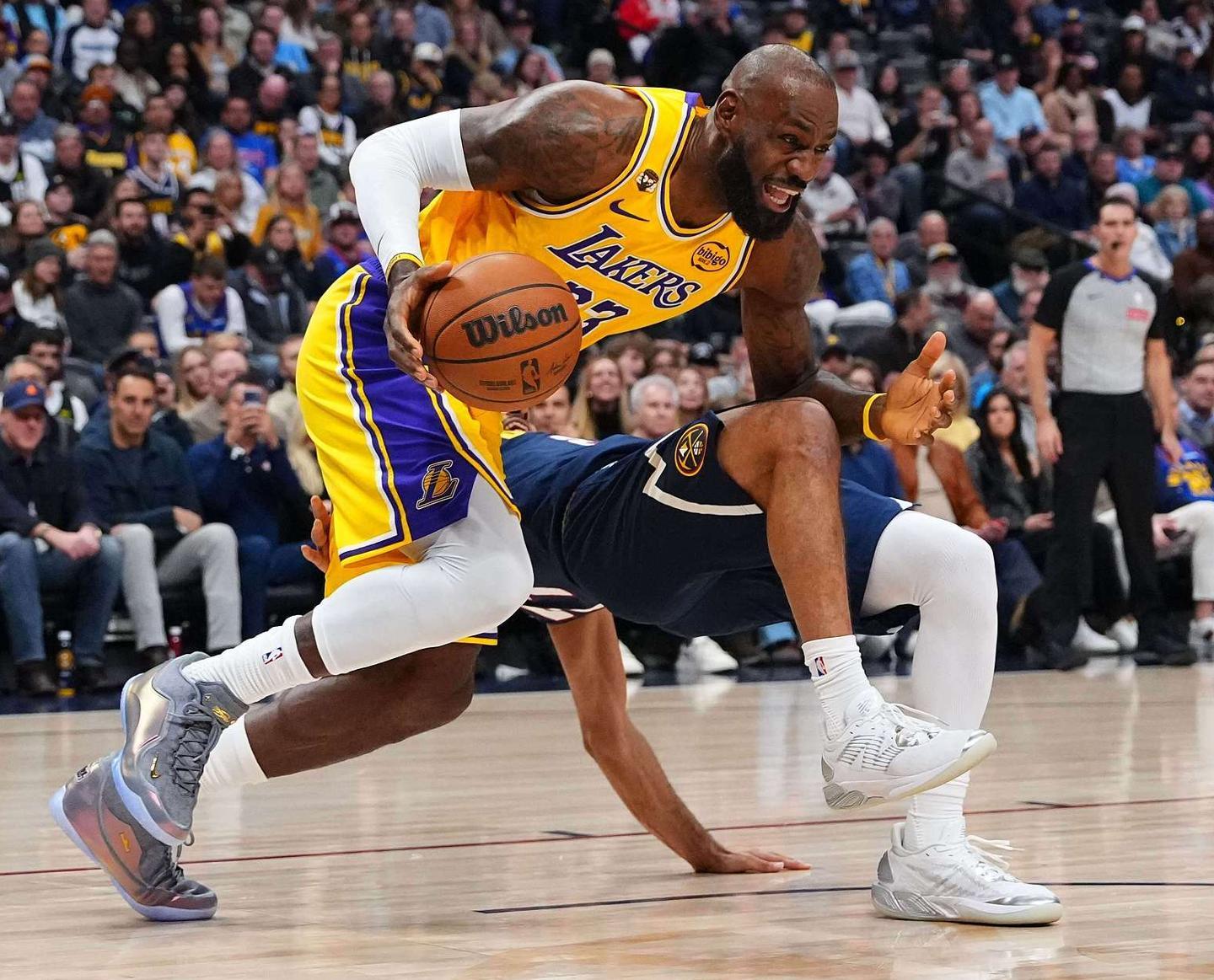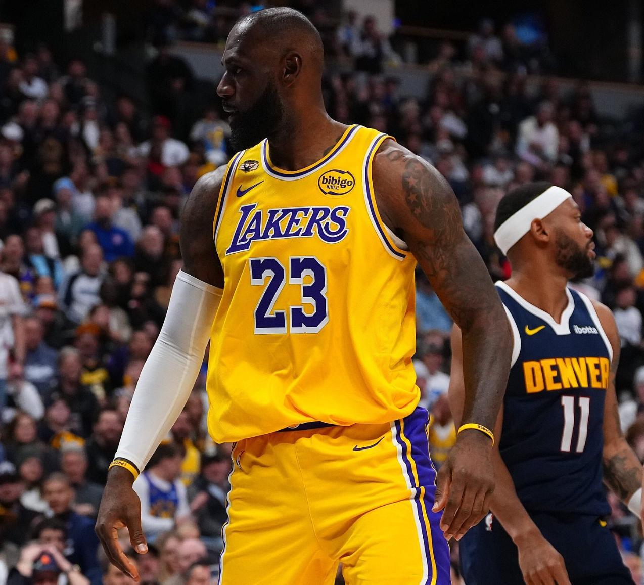 末節老詹兩次出手未能命中,但他送了兩個助攻湖人已經扳平分差,詹姆斯被換下後東契奇單核帶隊斯瑪特連拿6分,詹姆斯還剩4分鐘迴歸一個上籃打鐵,隨後籃下轉身造犯規兩罰一中,湖人前場失誤送6分,老詹關鍵的平框暴扣,隨後掘金犯規戰術比賽走向完結。