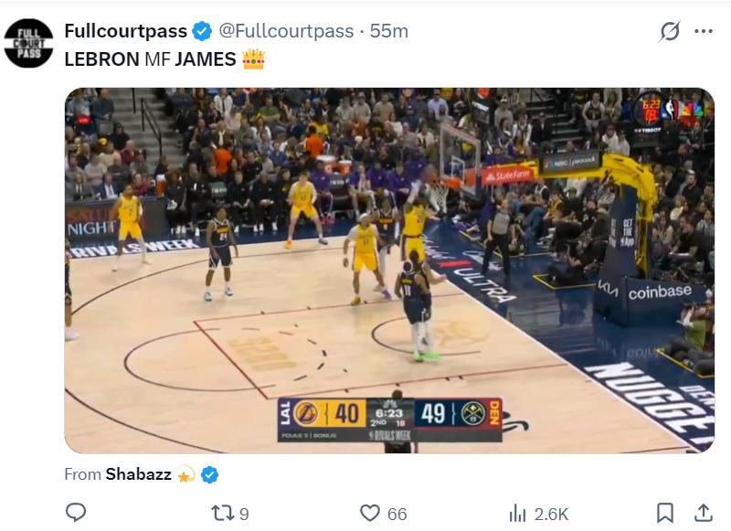 北京時間1月21日,NBA常規賽,湖人以115-107逆轉掘金拿到二連勝。這場比賽41歲的勒布朗-詹姆斯完成了兩個非常精彩的暴扣,尤其是第四節那個無球跑動後的平框單臂劈扣,頂級的自律超巨身體狀態太好了,全場比賽詹姆斯19分9籃板8助攻6失誤。