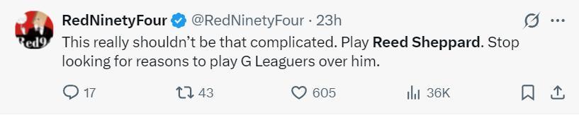 休媒:其實選擇很簡單,既然火箭用探花籤選了謝潑德,就不要用那些G聯賽的後衛,就讓謝潑德打就好了。