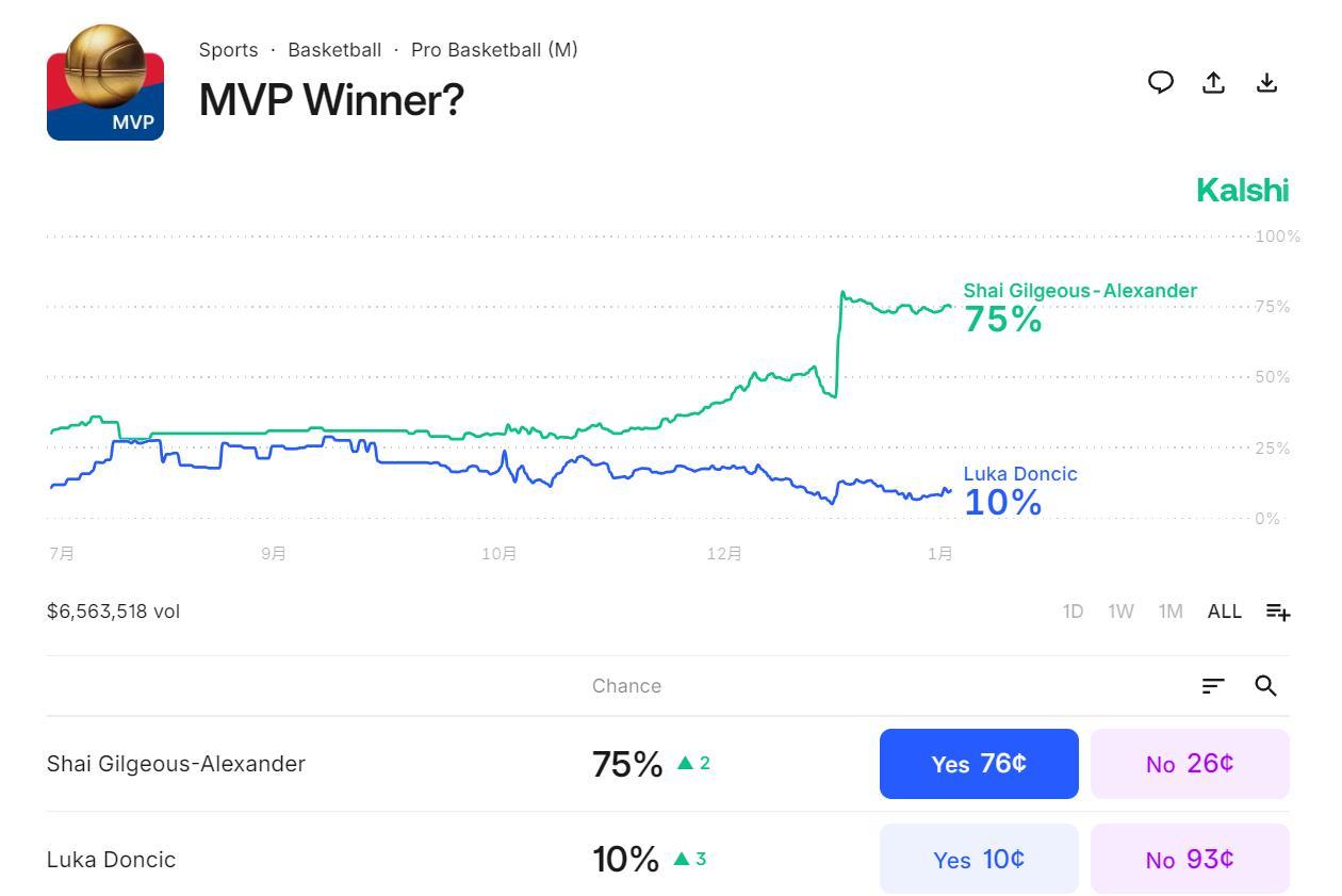 這場比賽後SGA的MVP概率從72%提升到75%,SGA的MVP概率已經斷崖領先,約基奇僅剩10%而且約基奇沒有復出的日期表,所以SGA衛冕MVP似乎已經確定。