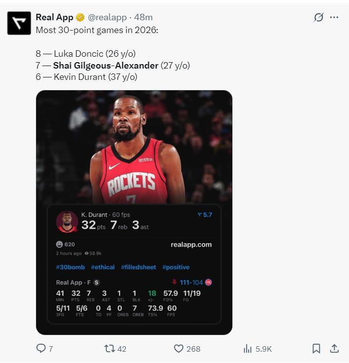 3.2026年SGA拿到7次30+僅次於東契奇;
